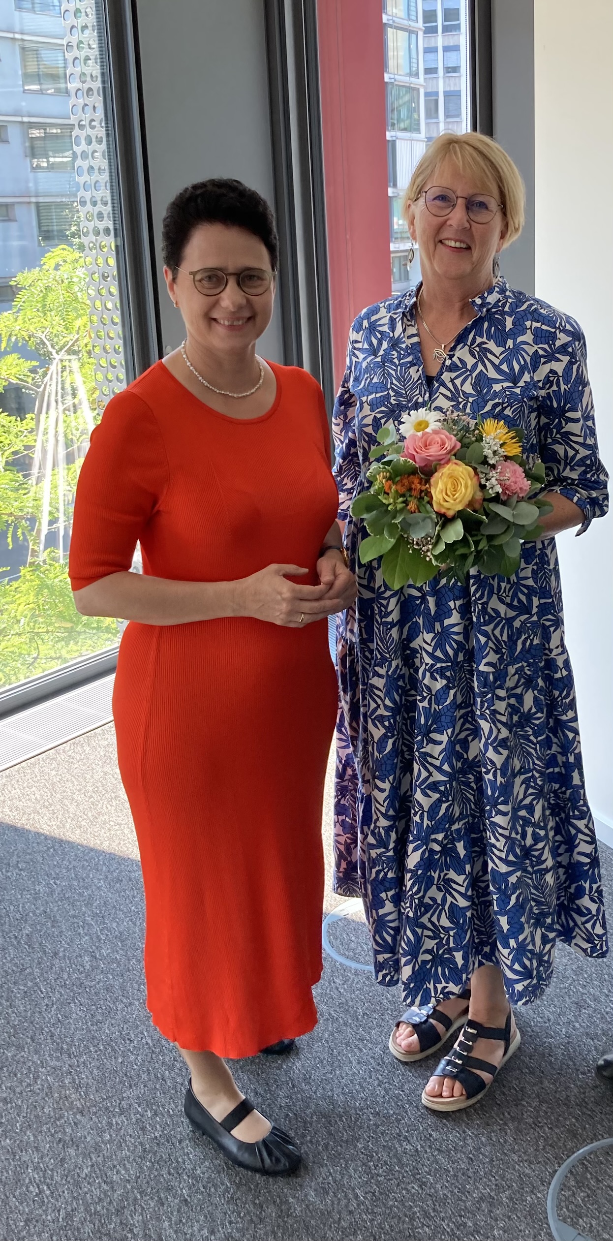 Kurzbeschreibung: Unsere Kollegin Uta Schwarz war, als Vertreterin der Gerichtshilfe, 13 Jahre lang im Kuratorium der Landesstiftung Opferschutz aktiv. Aufgrund ihres nahenden Ruhestandes muss sie das Gremium nun – schweren Herzens – verlassen. Marion Gentges, die Ministerin der Justiz und für Migration, verabschiedete sie bei ihrer letzten Sitzung im Juli mit sehr anerkennenden Worten und einem Blumenstrauß.