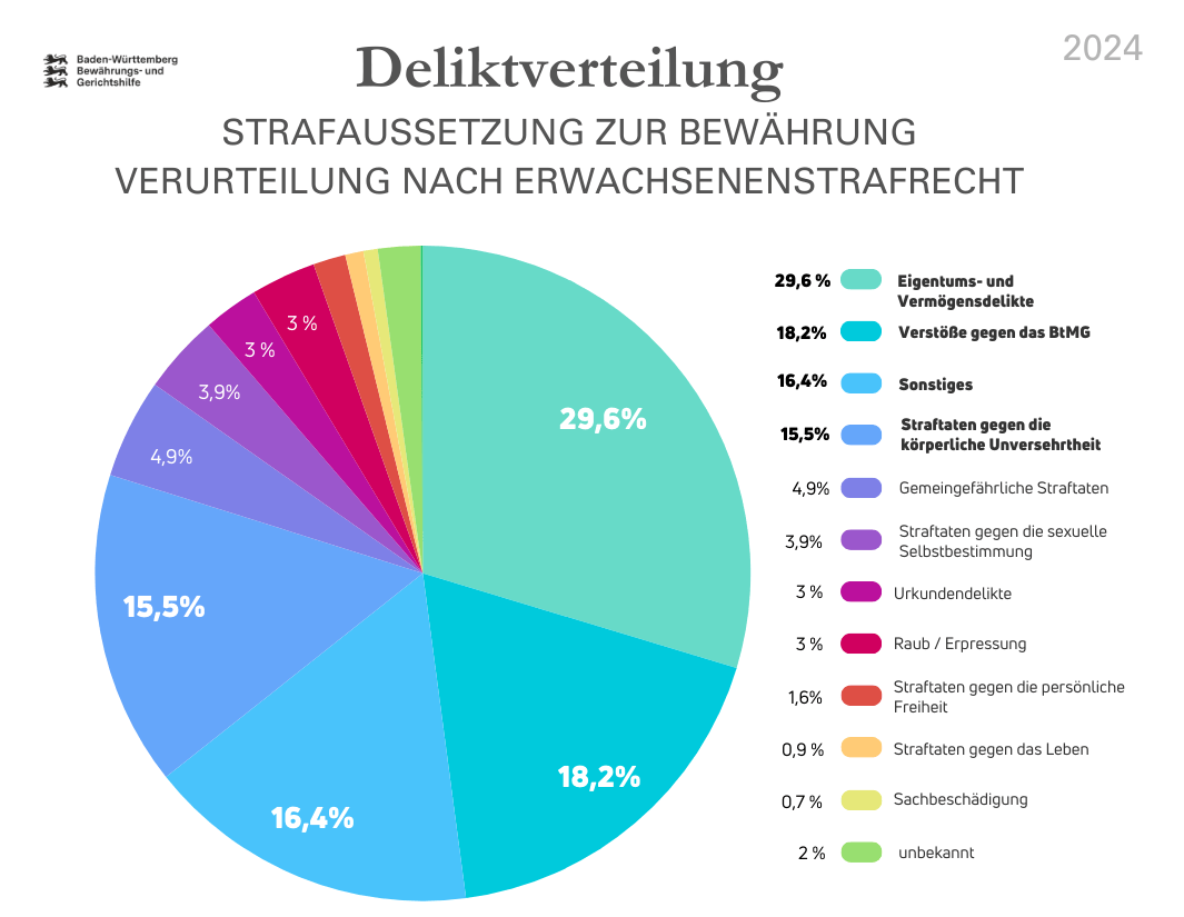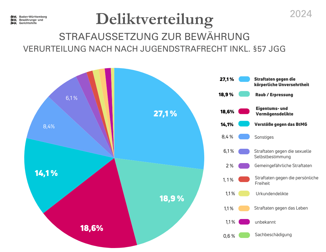 • Deliktverteilung nach JGG Unterstellten im Jahr 2024